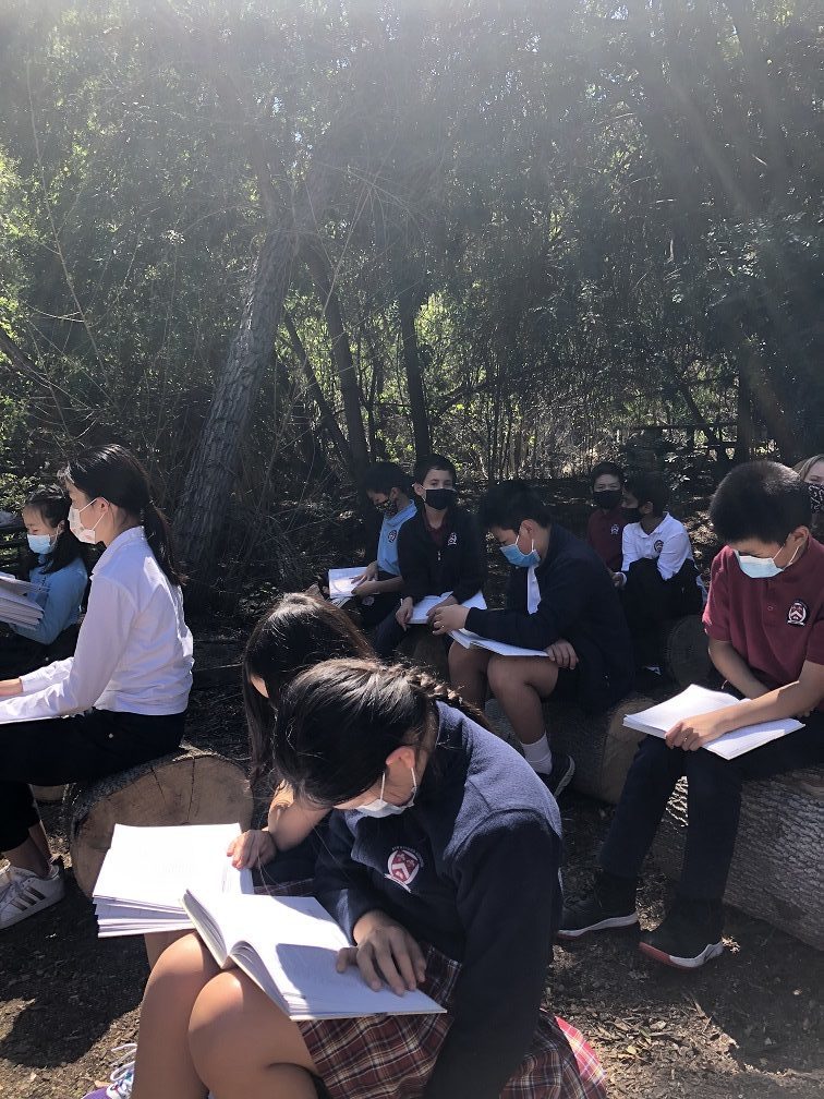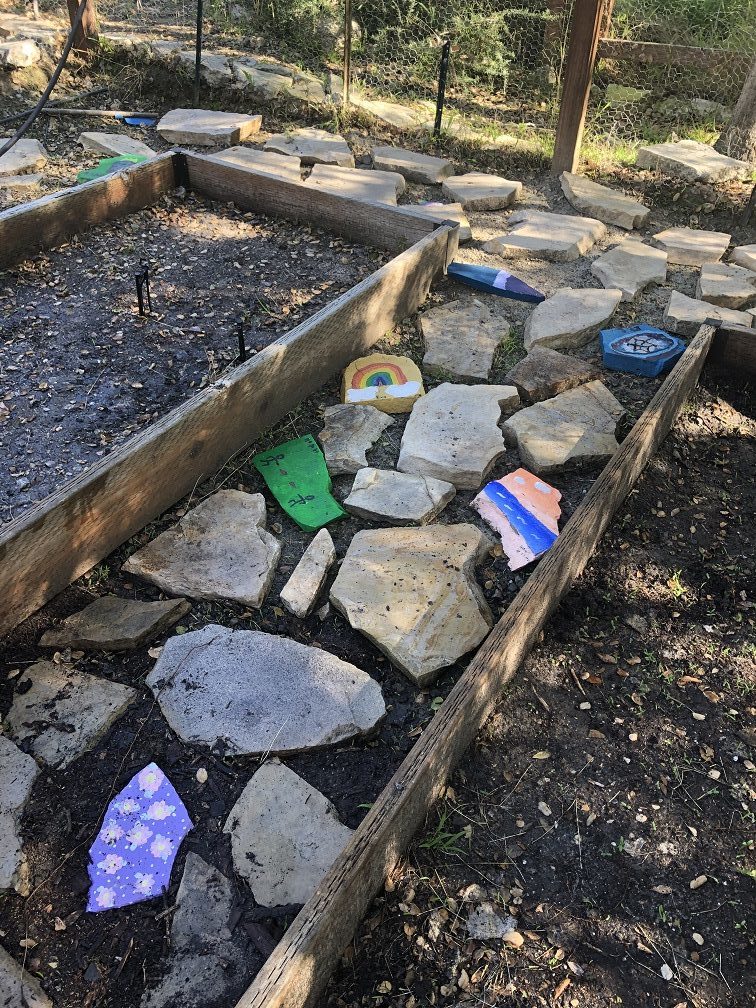 Over the next few weeks, Mrs. Hobson’s class watched as their garden sprang to life. Herbs and flowers sprouted, fresh clovers filled the gaps between their custom painted garden stones, and the inspiration continued. Noticing a surplus pile of building materials near the garden, students used pavers to create pathways, wooden beams to map out an “amphitheater,” and logs to provide comfortable seating. Students can sometimes be found utilizing this spot for their daily literature lessons; soaking up the sun and listening to the sounds of nature as they pore through a good book. Science, technology, engineering, art, and math have all been put into good use in Hobson Hideaway, making it a living example of the enthusiasm for STEAM based learning.