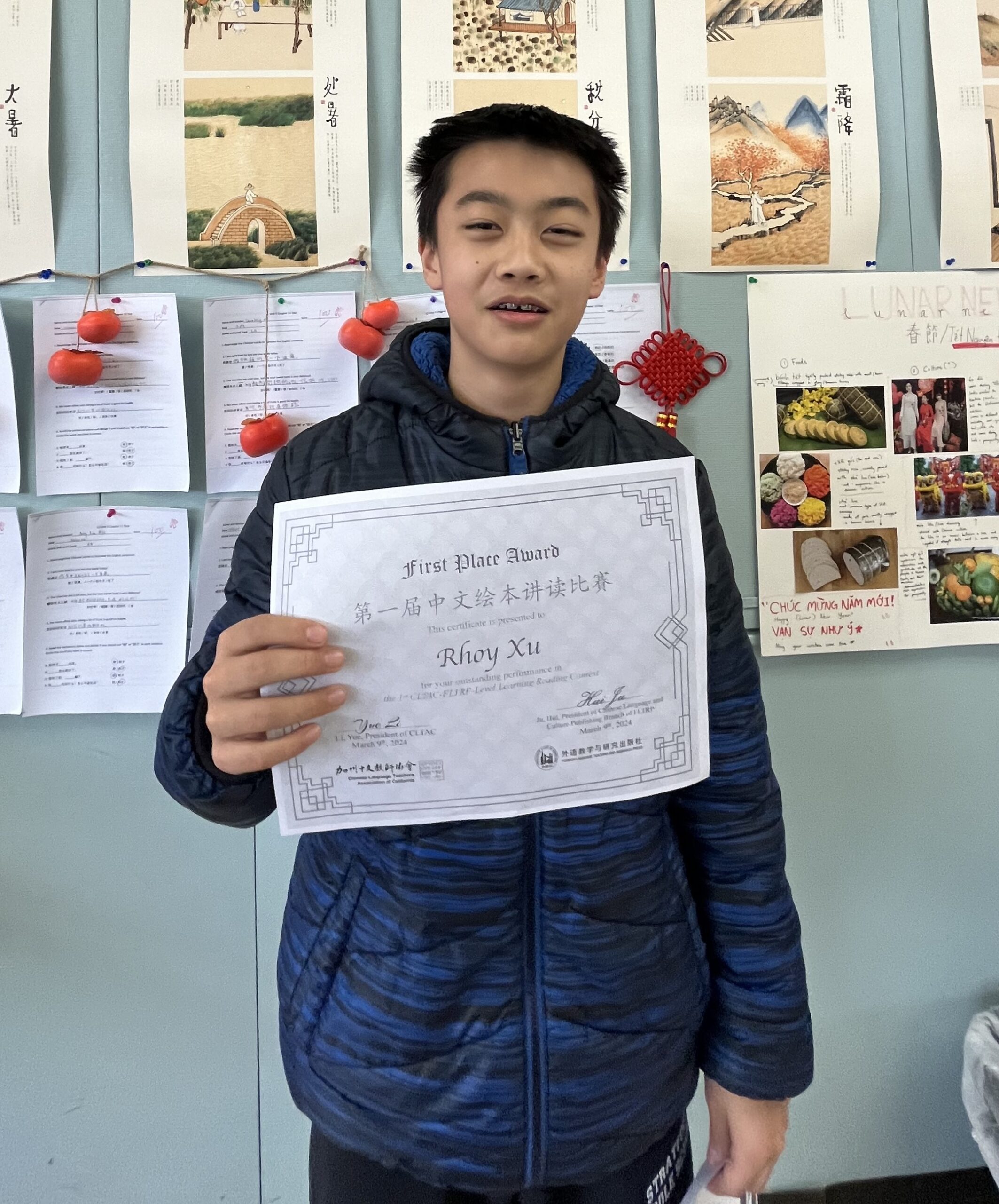 - Rhoy Xu, 8G, First Place Award in the 9-13 Years Heritage Group